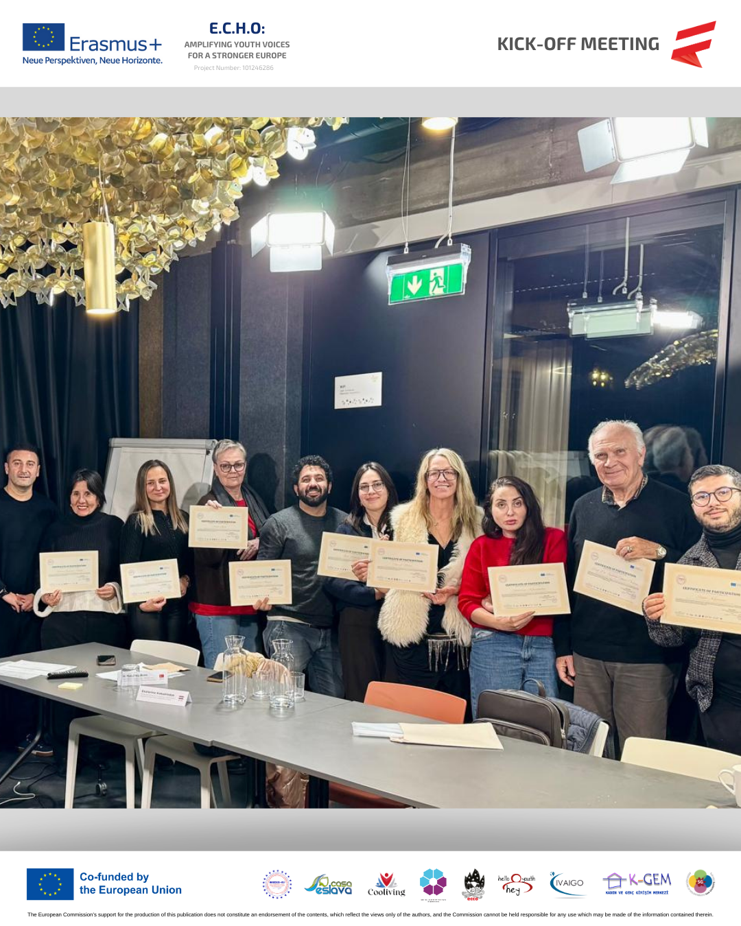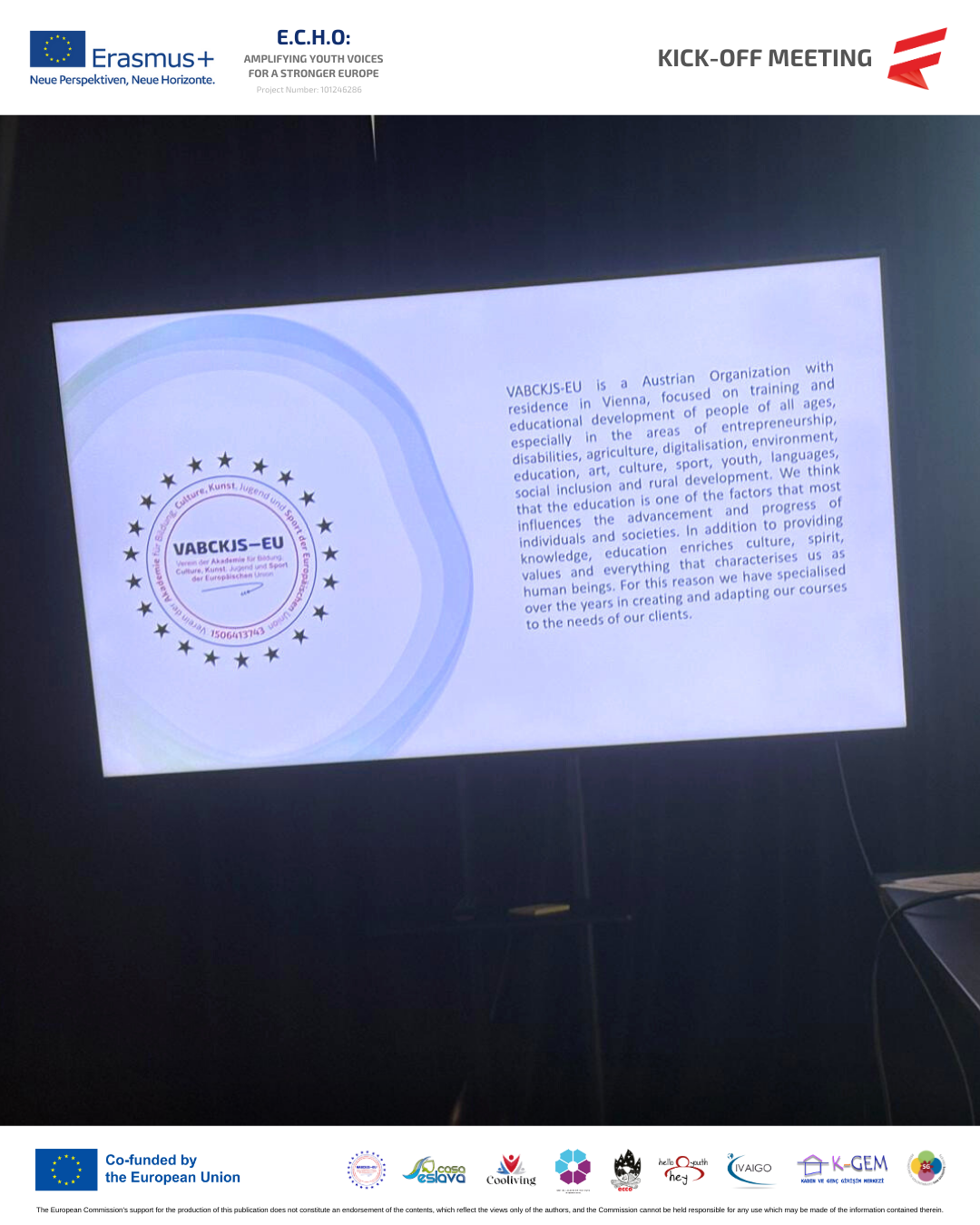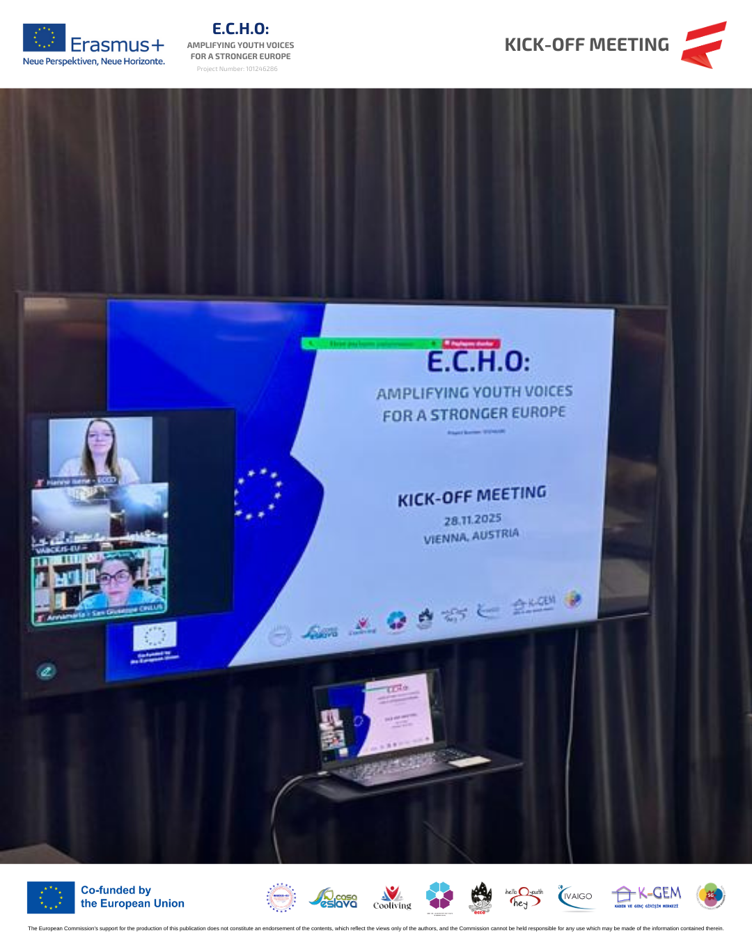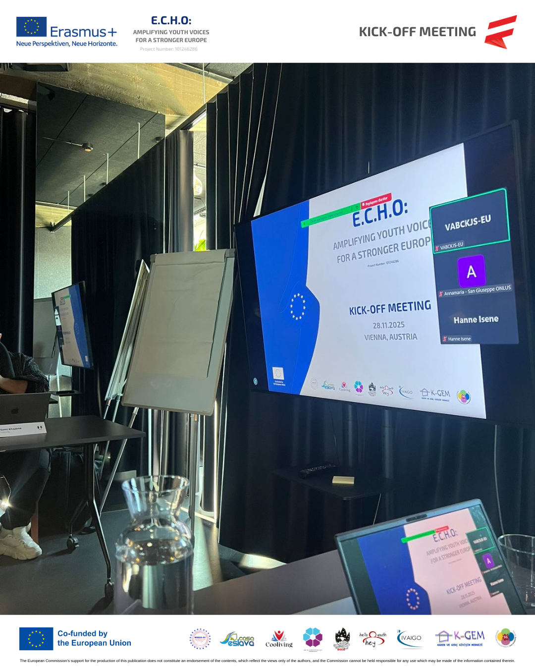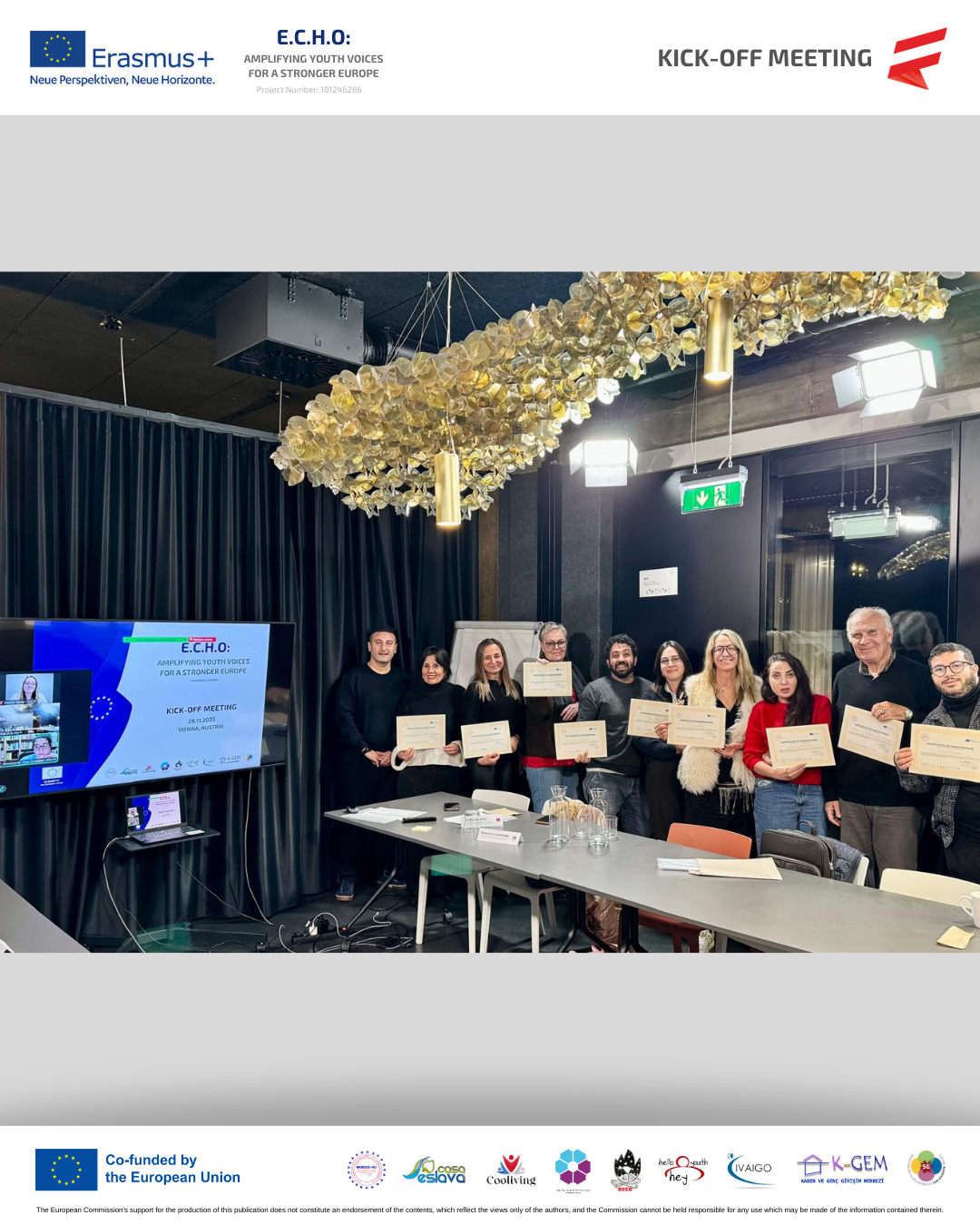 Als VABCKJS-EU freuen wir uns sehr, das Kick-off-Meeting unseres Projekts “E.C.H.O: Amplifying Youth Voices for a Stronger Europe” (Projektnummer: 101246286), das wir im Rahmen des Erasmus+ European Youth Together Programms koordinieren, erfolgreich in Wien durchgeführt zu haben. 🇦🇹